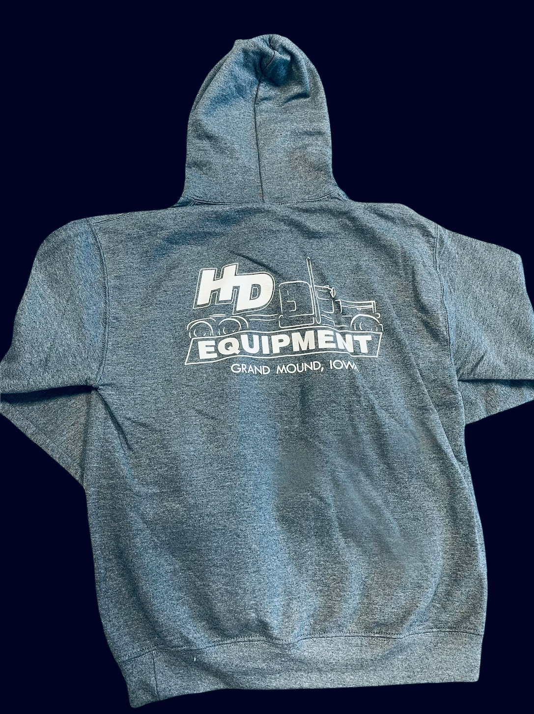 This premium medium weight fleece lined sweatshirt features a large HD Equipment logo on the back with a small logo on the front.